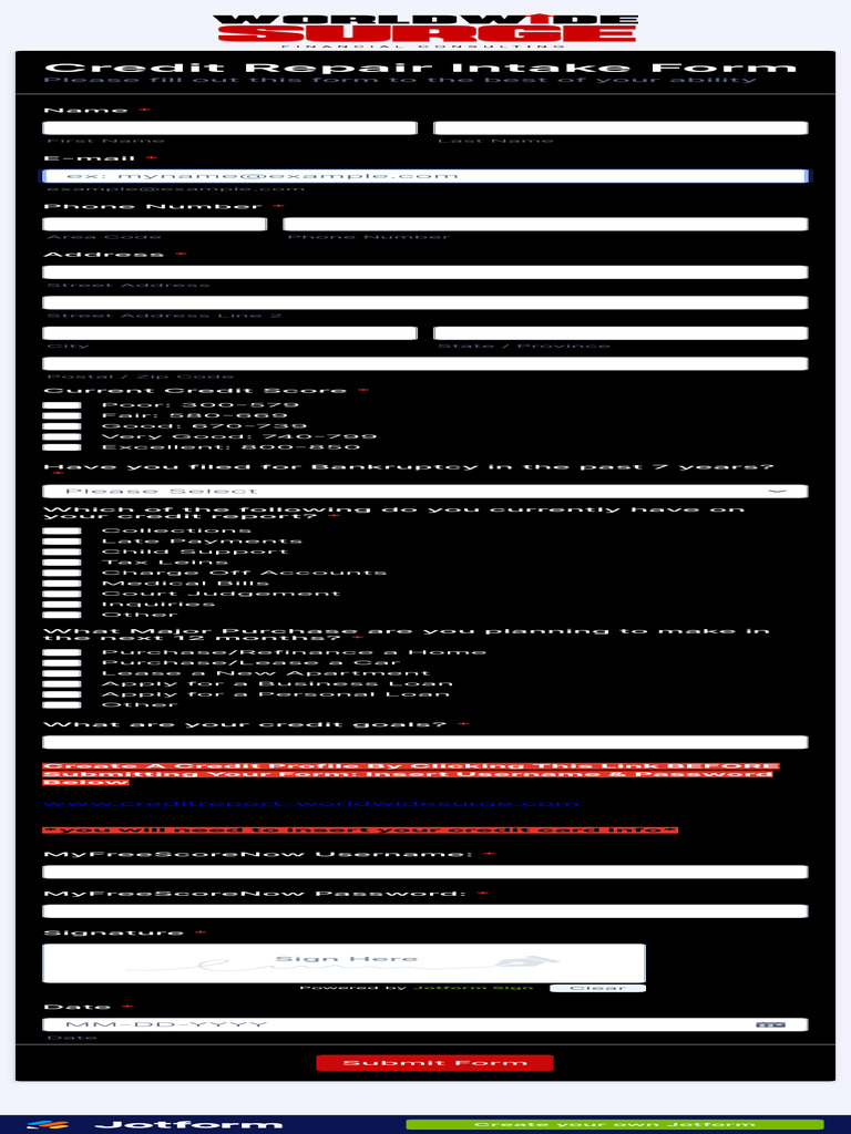 Credit Repair Client Intake Form: Editable Template (CANVA, Printable ...