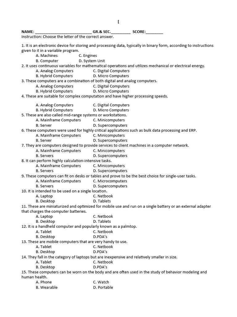 Computer Literacy Test For SMG IV V | PDF | Computer Network ...