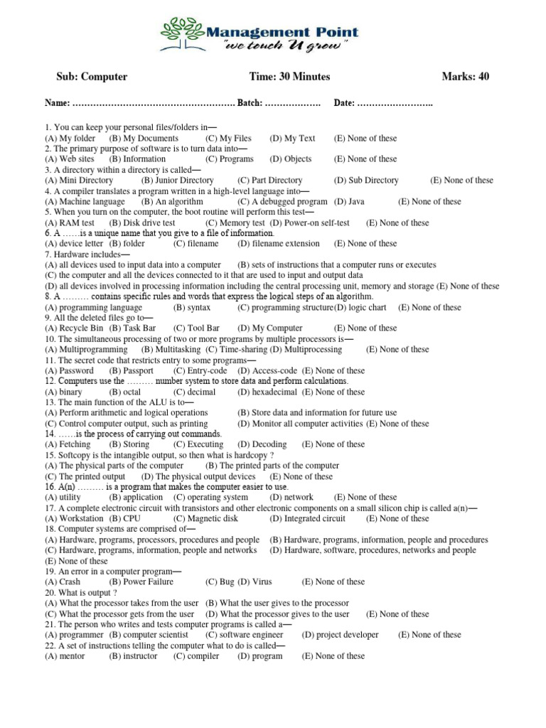 Computer Fundamental (English) Practice Test – 1 | कॉम्प्युटर फंडामेंटल ...