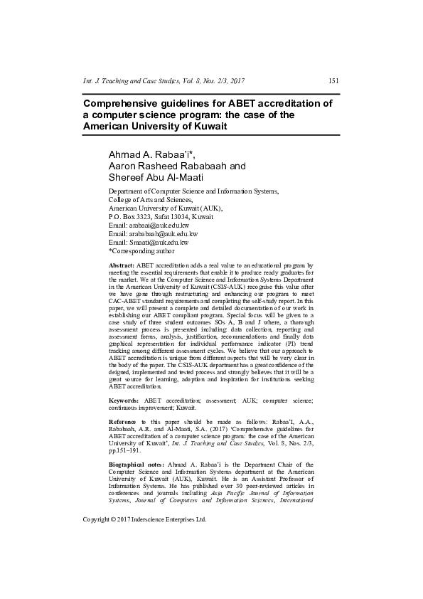 (PDF) Comprehensive guidelines for ABET accreditation of a computer ...
