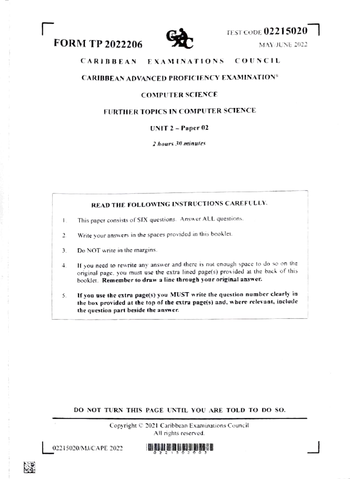 CAPE Computer Science 2022 Unit 2 Paper 02 Exam Guide - Studocu