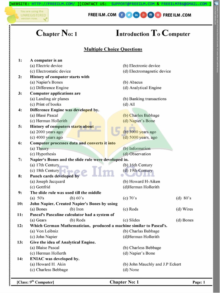 Computer Science Class 9 | Chapter # 1 Fundamentals of Computer | MCQ`s ...