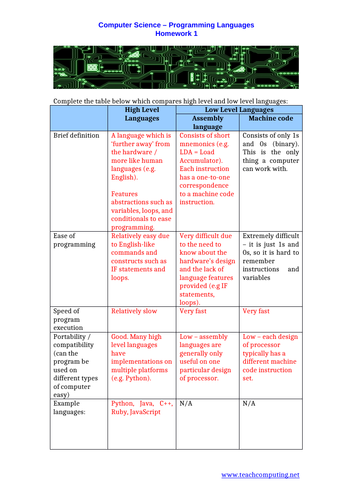 Low level programming languages homework tasks - GCSE Computer Science ...