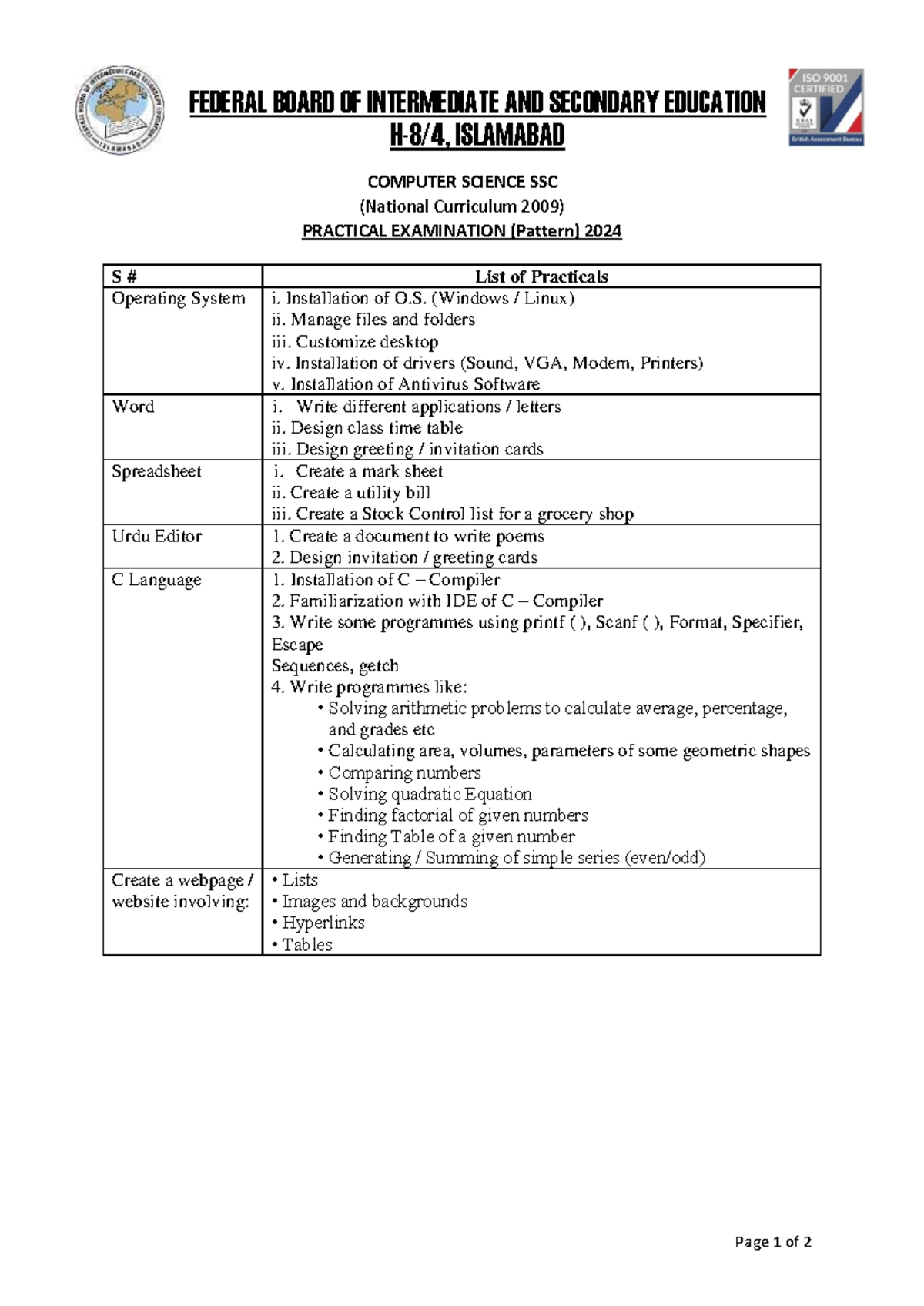 HSSC Computer Science List of Practical and Questions | PDF | Matrix ...