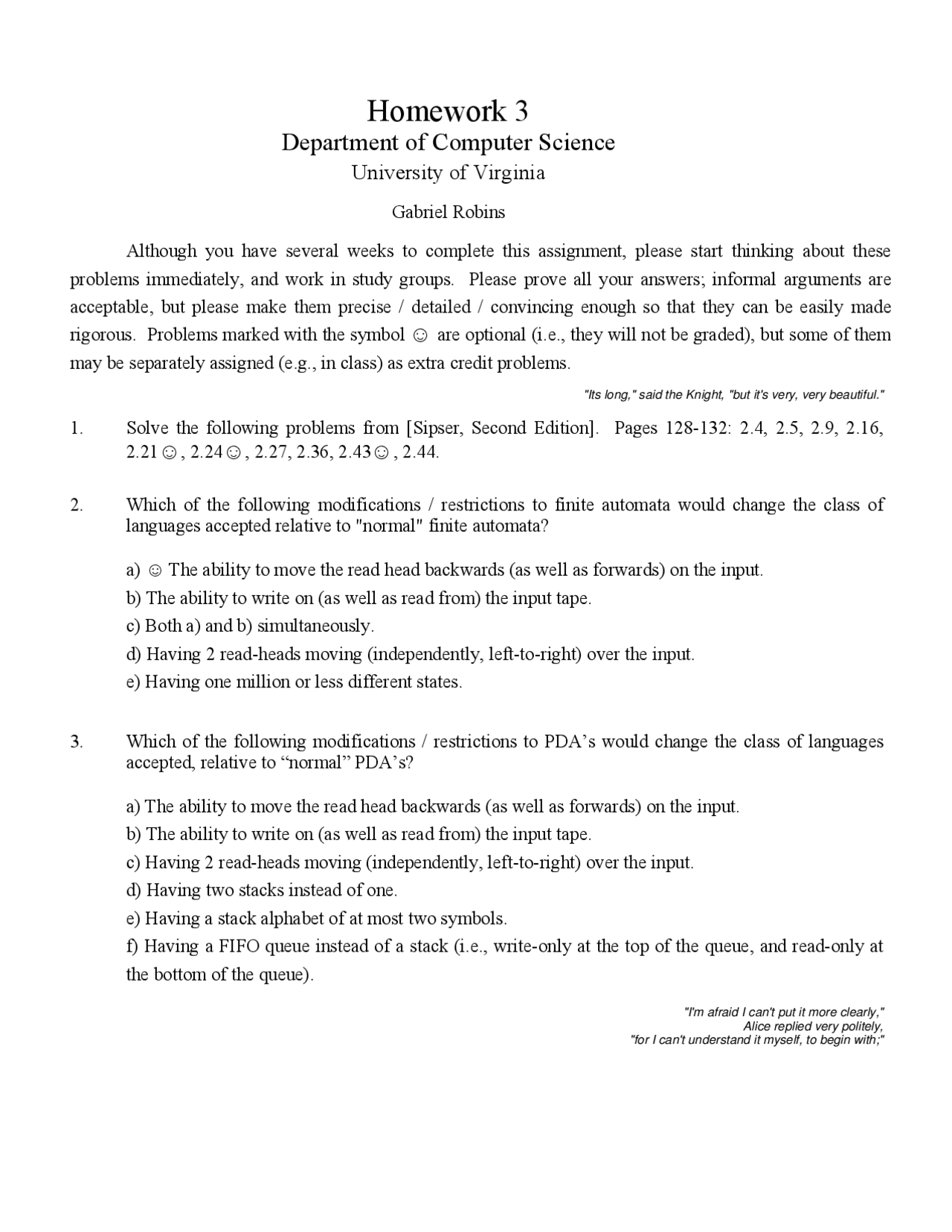 Homework 3 - Computer Science Theory Problems - Prof. Gabriel Robins ...