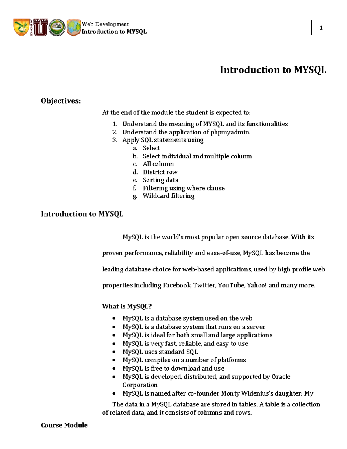Week008-009-Module - LECTURE - Web Development Introduction to MYSQL 1 ...