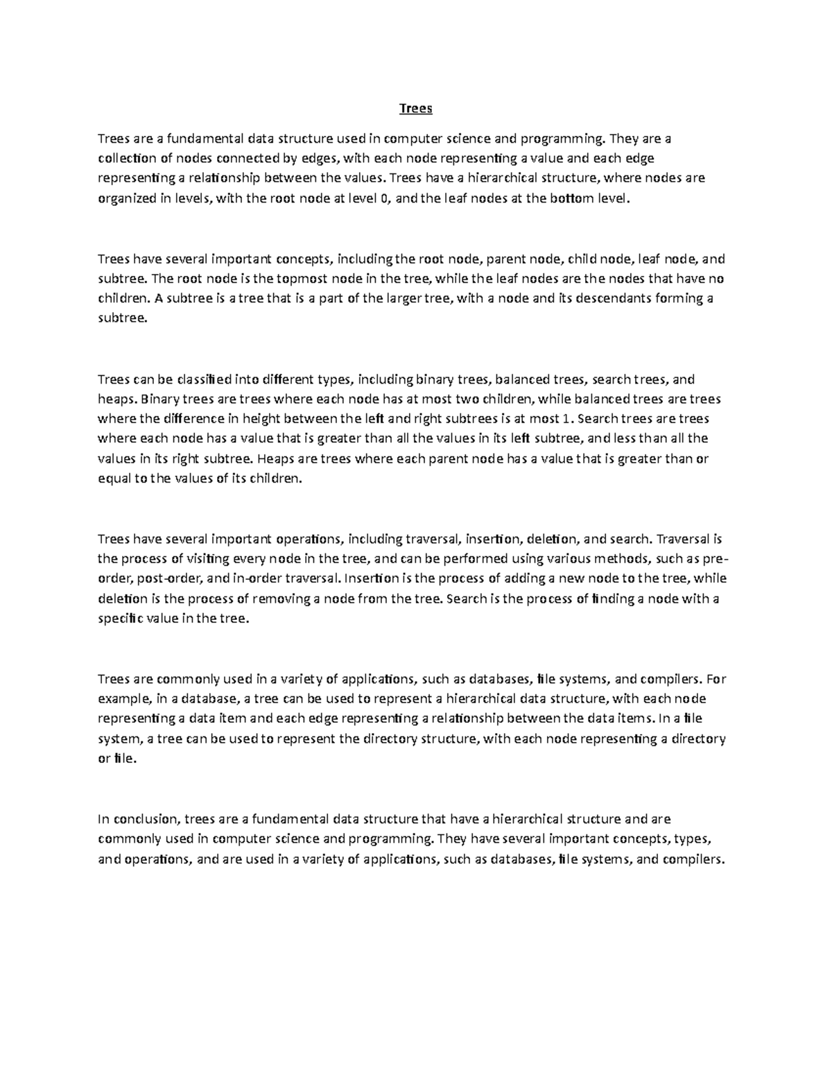 Trees - Trees Trees are a fundamental data structure used in computer ...