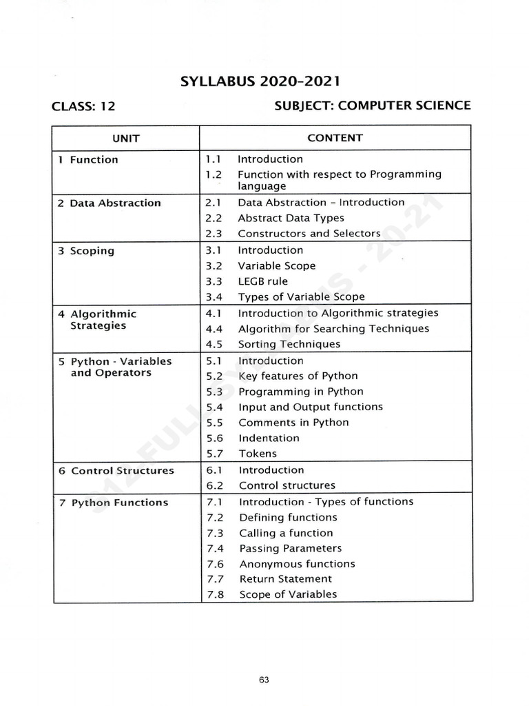 Syllabus Overview | Class 12 Computer Science with Python | Code - 083 ...
