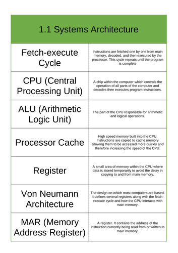 OCR GCSE Computer Science Unit 1.1 Systems Architecture (Key vocabulary ...