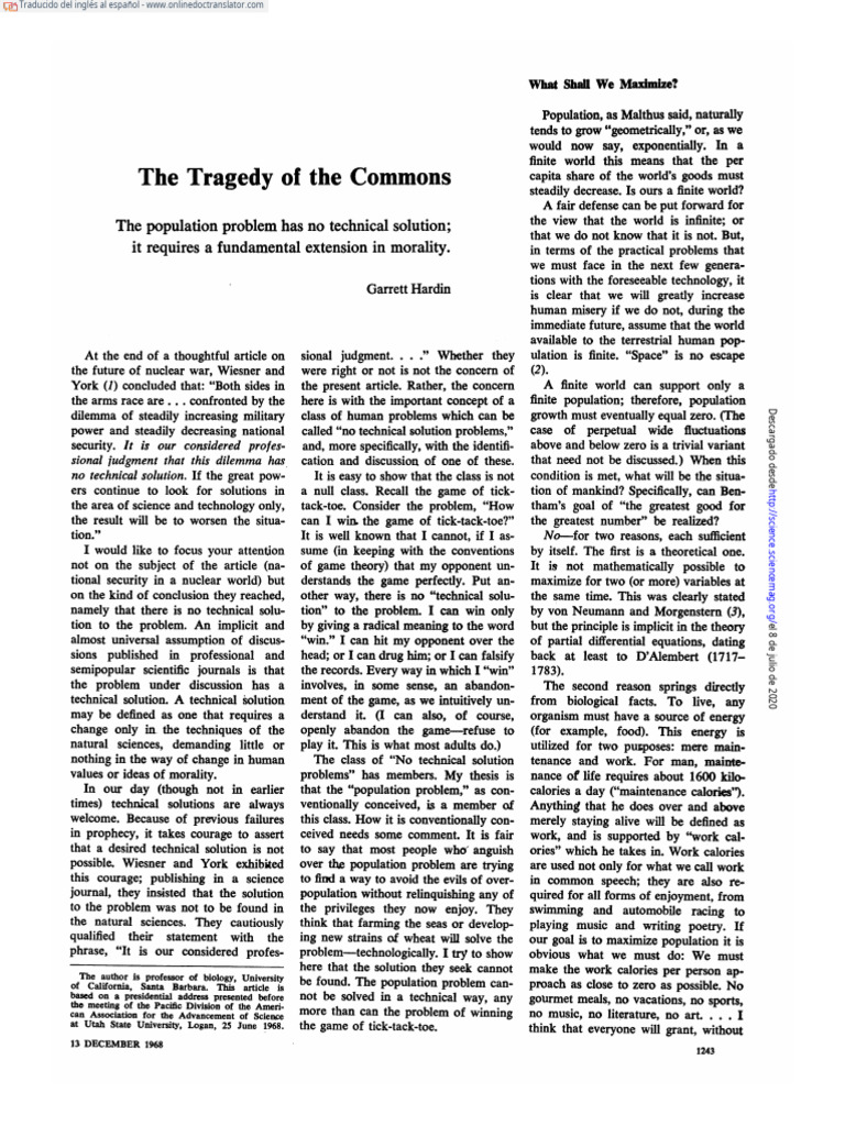 La tragedia de los bienes comunes | PDF