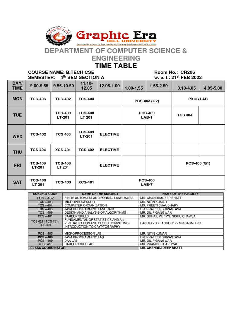 Department of Computer Science & Engineering: Time Table | PDF ...