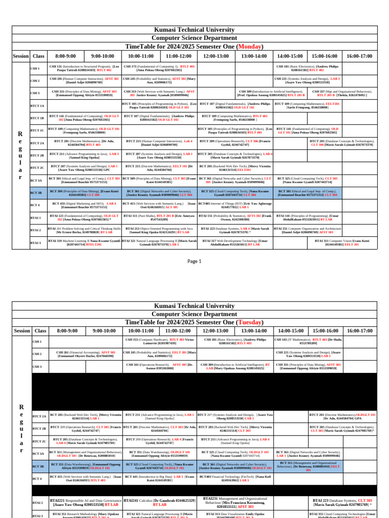 Kumasi Tech University 2024/2025 Timetable | PDF | Information ...