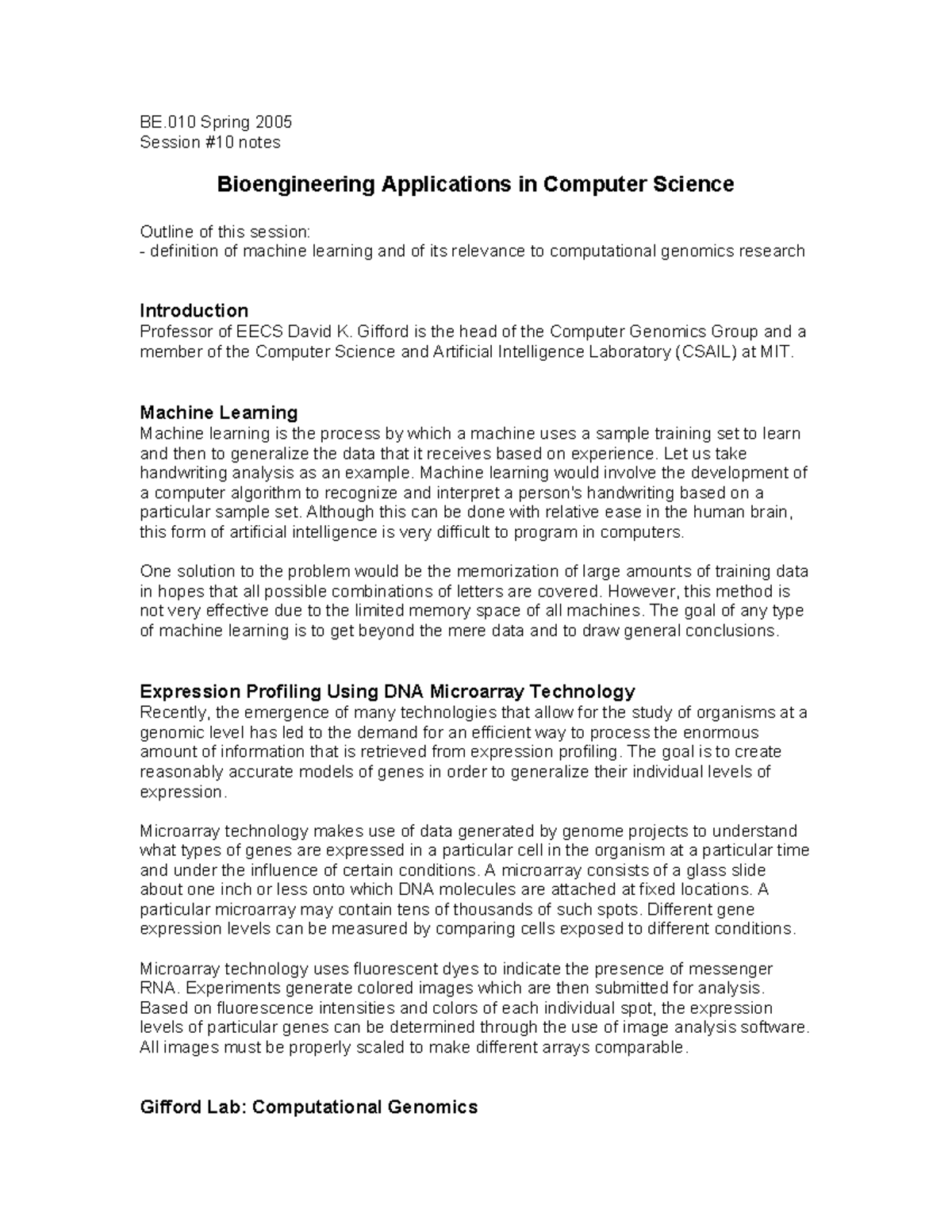 Bioengineering Applications in Computer Science - BE Spring 2005 ...