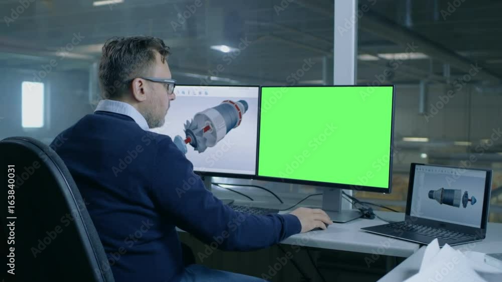 Chief Male Engineer Designs 3D Turbine/ Engine For a Big Industrial ...