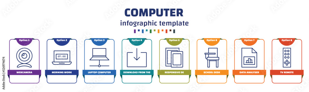Computer Multicolored Infographic Template With Line Icons Stock ...