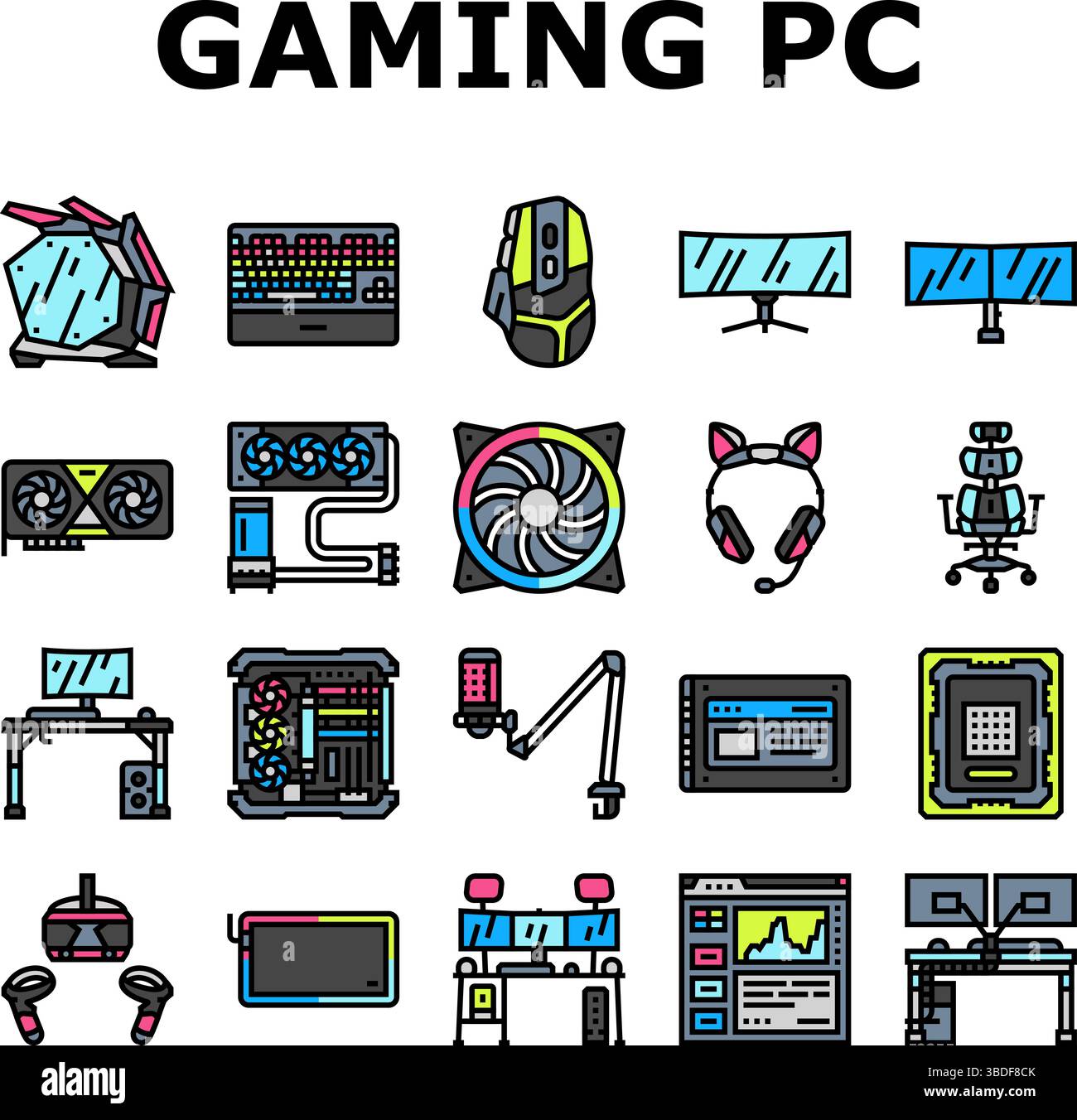 gaming pc hardware icons set vector Stock Vector Image & Art - Alamy