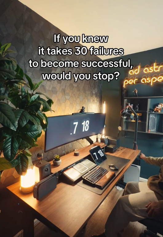 An unattended desk at 4:00 a.m. with a glowing monitor actively running ...
