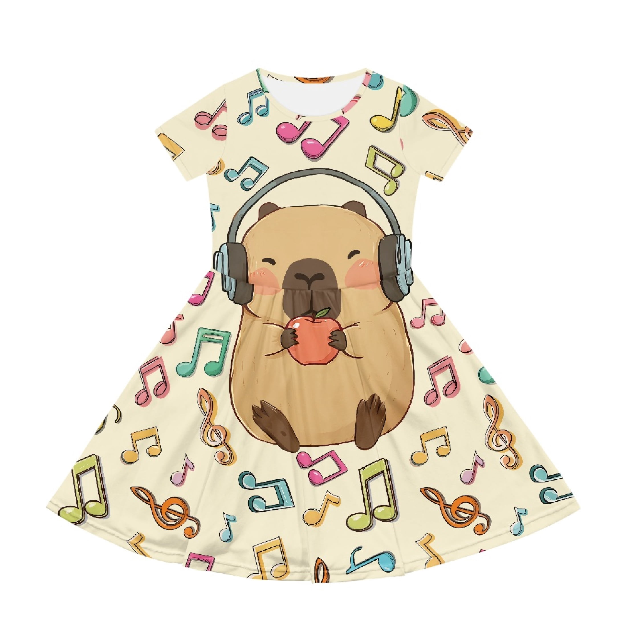 CHAQLIN Capybara Music Design Short Sleeve Dress Soft Fabric 2-14 Years ...