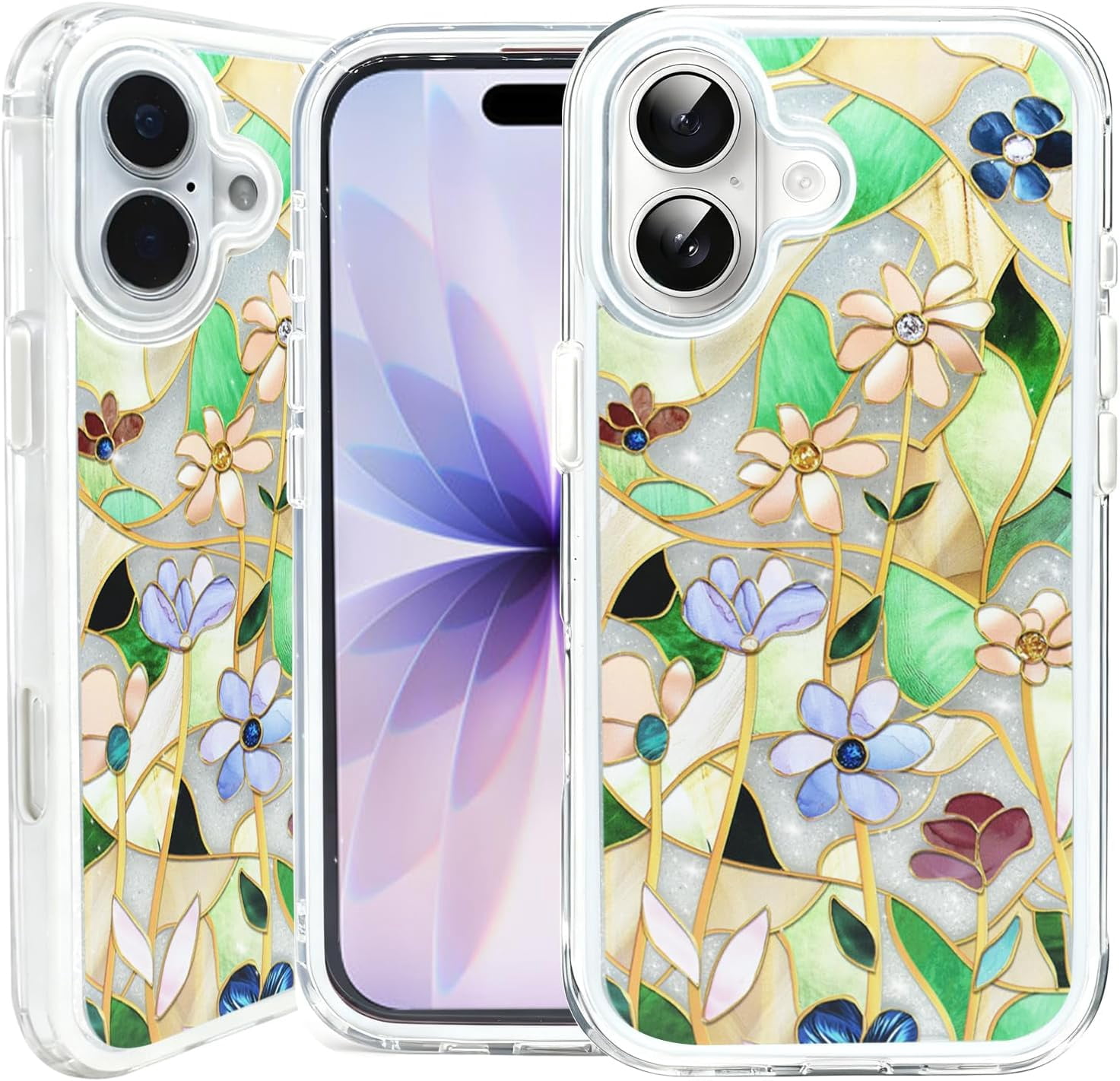Case for iPhone 17 Case Glitter Clear with Design Embossed Floral ...