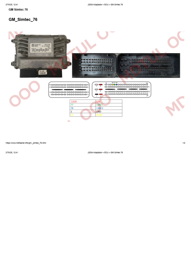 J2534 Адаптер > ECU > GM Simtec 76