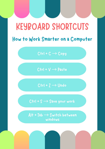 Keyboard Shortcuts – How to Work Smarter on a Computer Poster ...