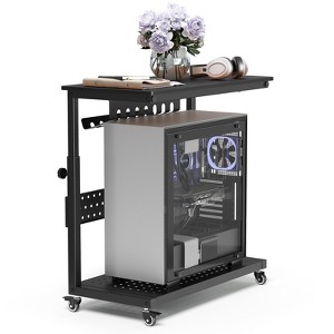 Adjustable 2-Tier Mobile Computer Tower Stand with Cable Management ...