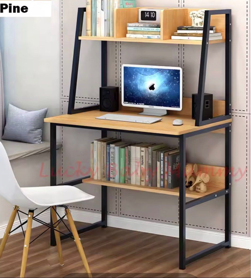 SG Ready Stock H Design Computer Study Table With Bookshelves | Shopee ...