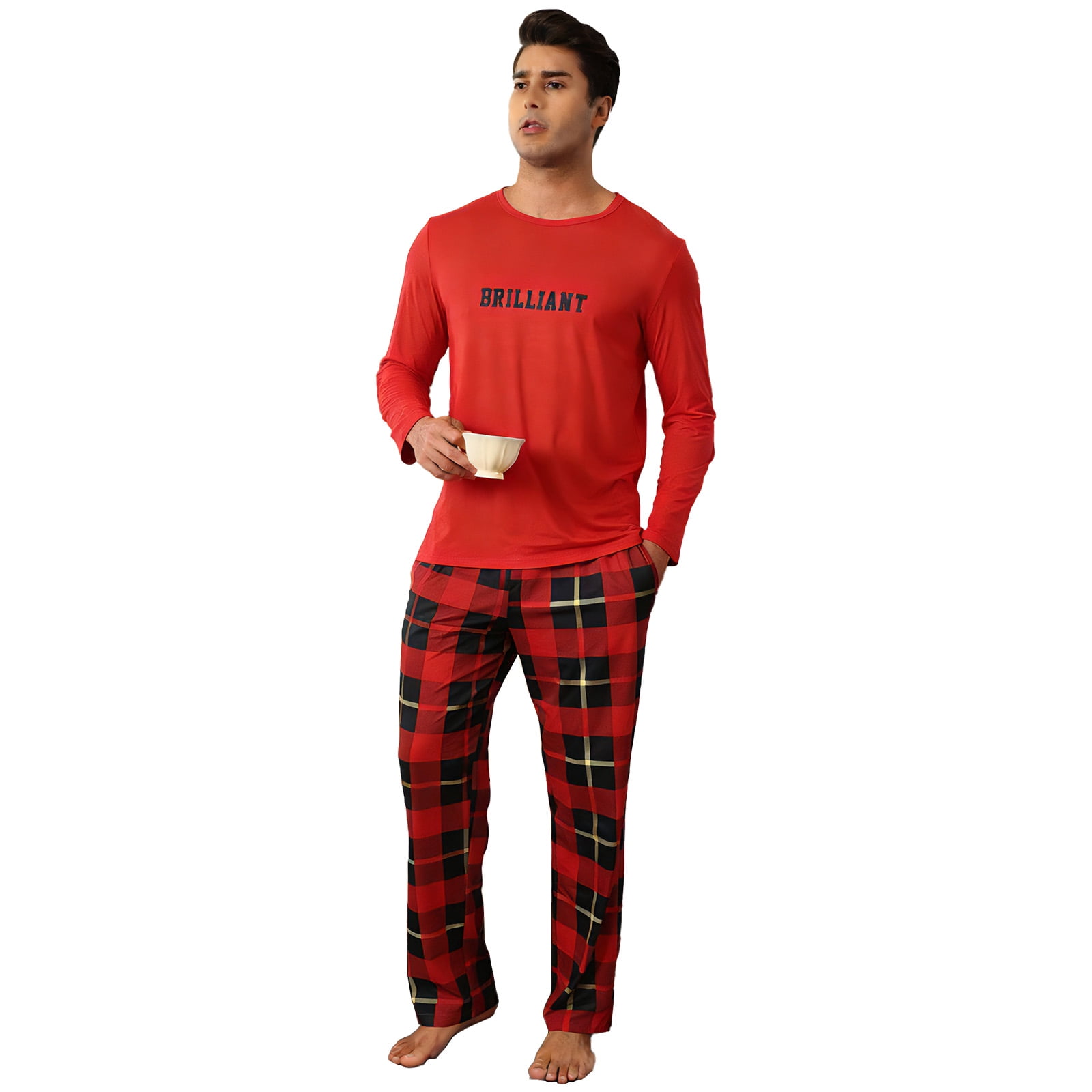 ZEFORTEX Men's Pajamas Set Long Sleeve Top with Plaid Pants Soft ...