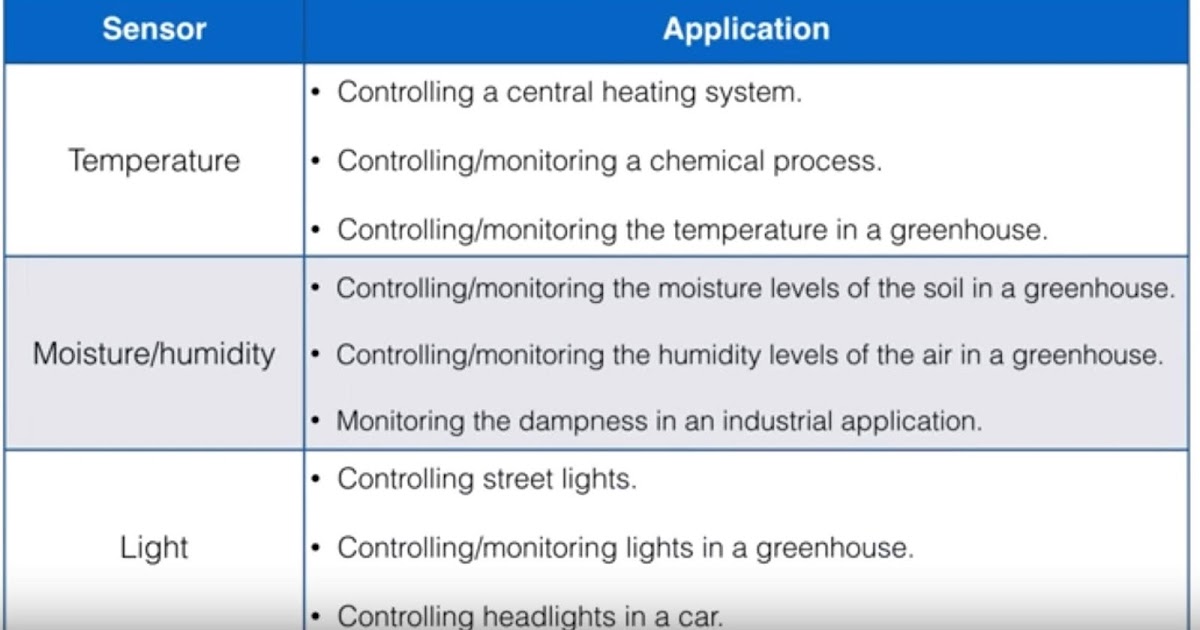 IGCSE Computer Science: 1.3.3 (k): describe how a range of sensors can ...