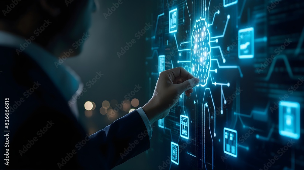 Person working with an ai hologram, harmonious coexistence of humans ...