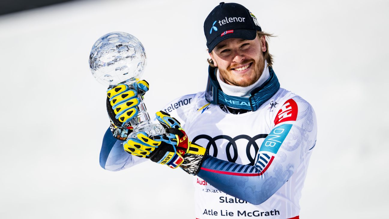 Atle Lie McGrath wins World Cup men's slalom title on home snow