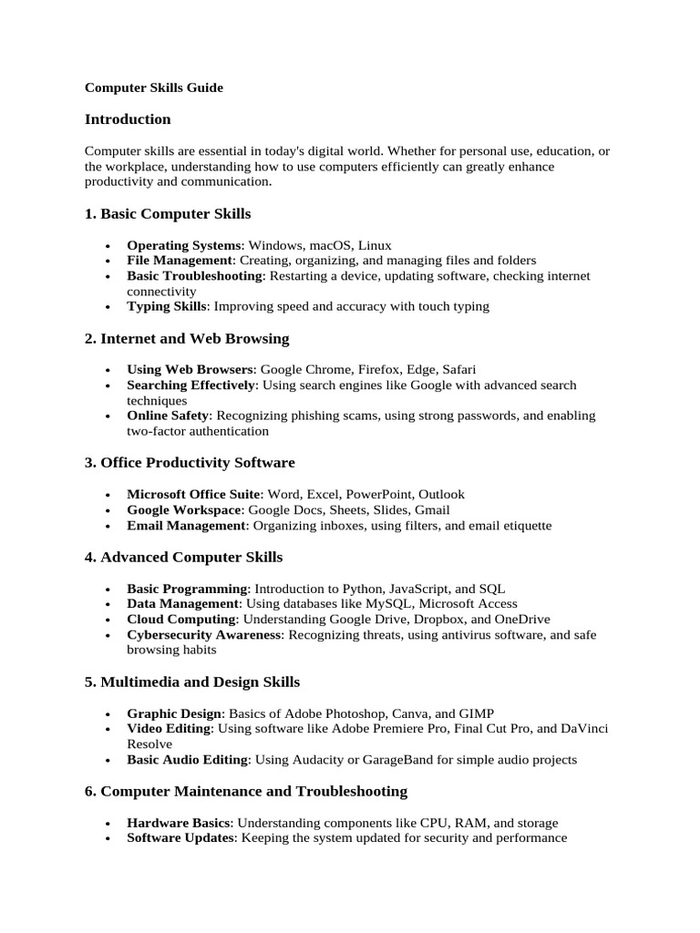 Computer Skills Guide | PDF
