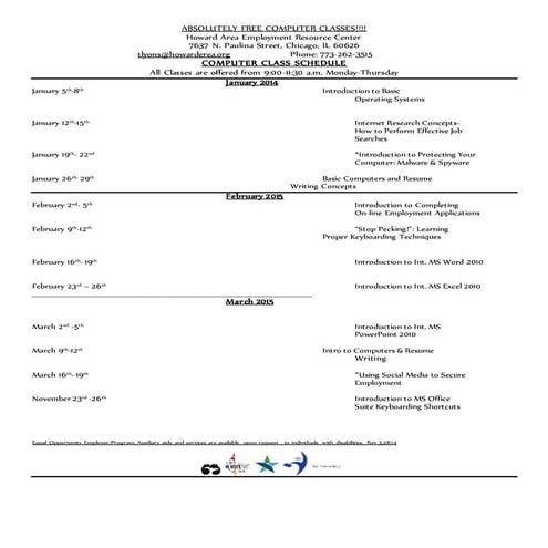 FREE COMPUTER CLASSES- January 2015- March 2015 computer workshop ...