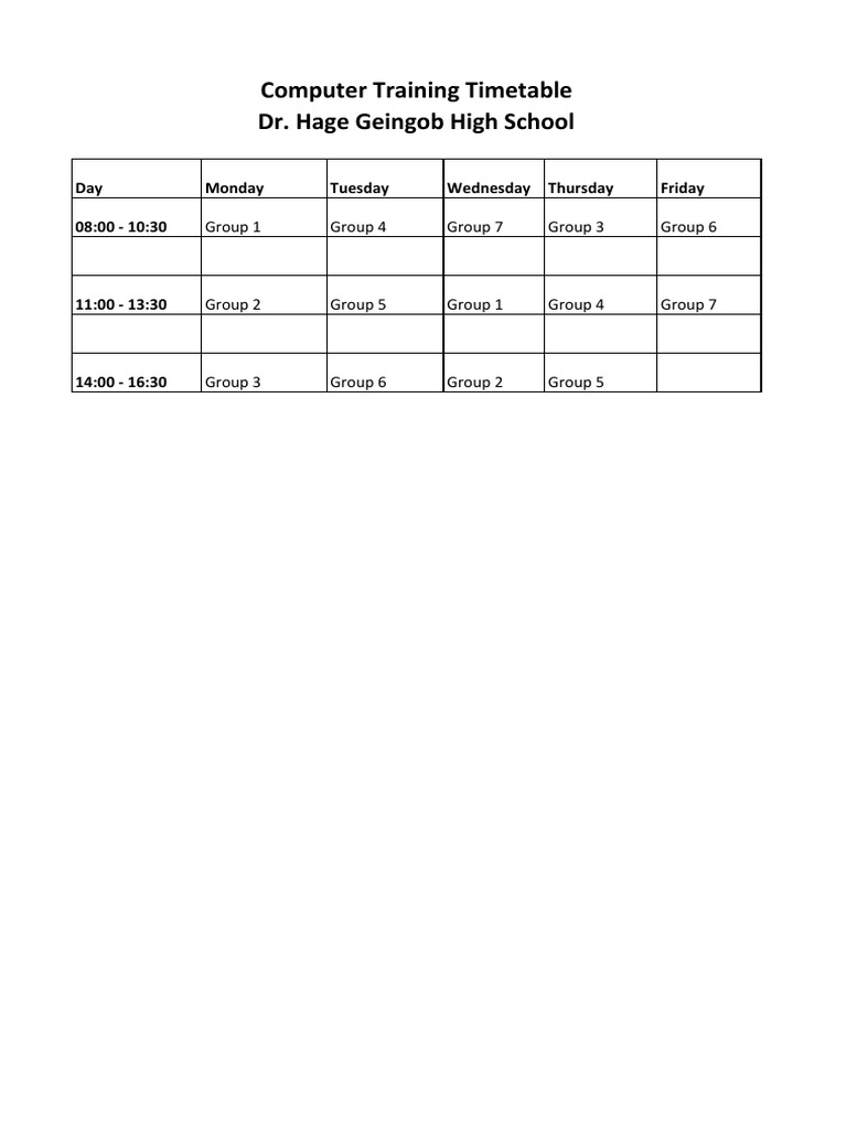 Dr. Hage Geingob High School Computer Training Timetable: Group 1 Group ...