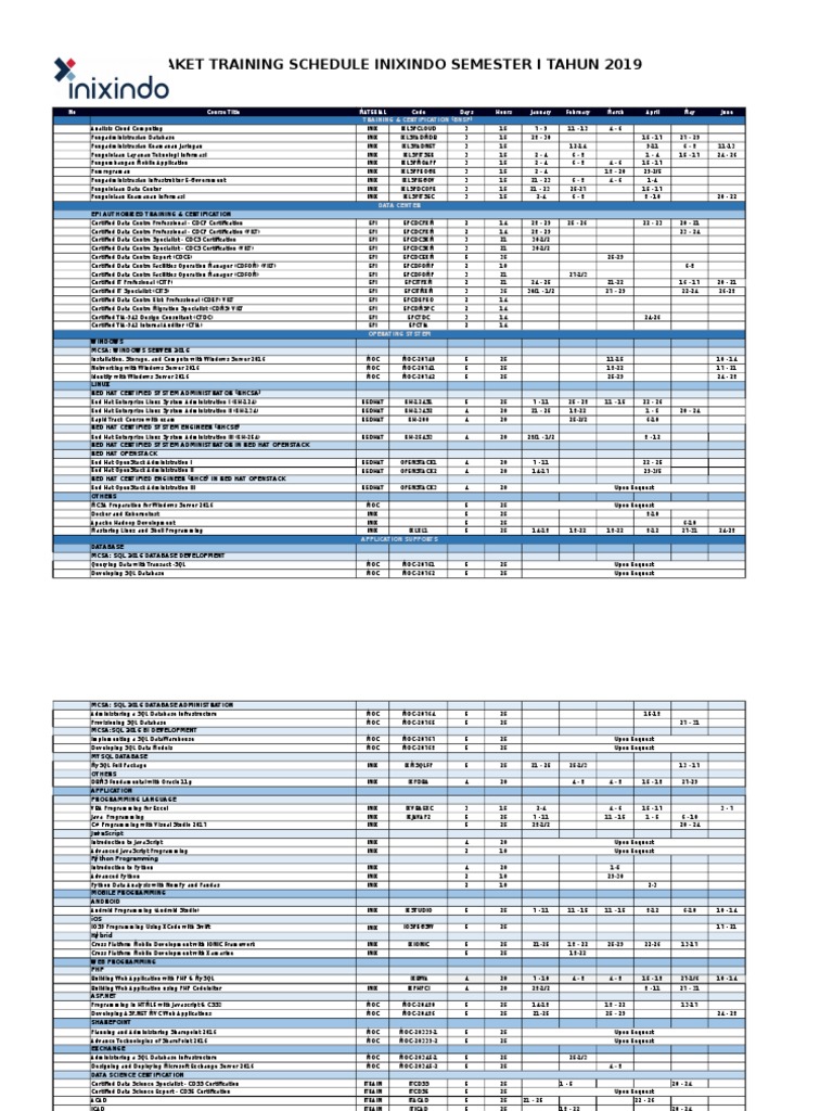 Training Calendar: Vendor / Course Schedule | PDF | Computer Science ...