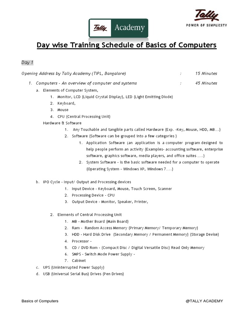 Day-wise Computer Basics Training Schedule | PDF | Computer Data ...