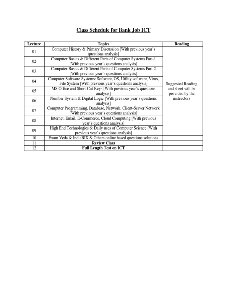 10 Weeks Schedule For Computer Short Course | PDF | Microsoft Word ...