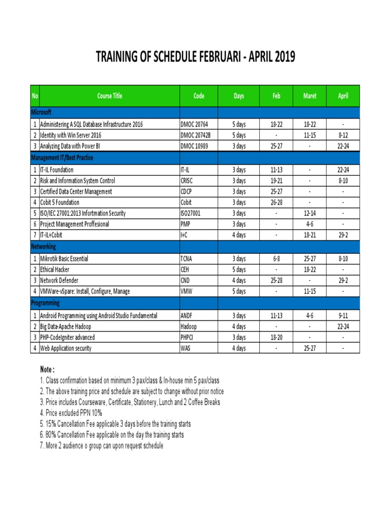 2019 IT Training Schedule: Feb-April | PDF | Data Management | Computer ...