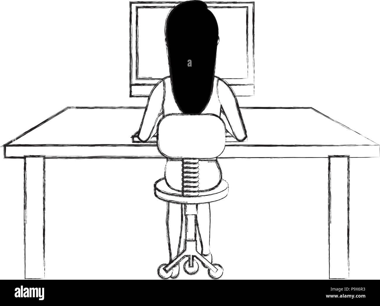 user female with computer desktop Stock Vector Image & Art - Alamy