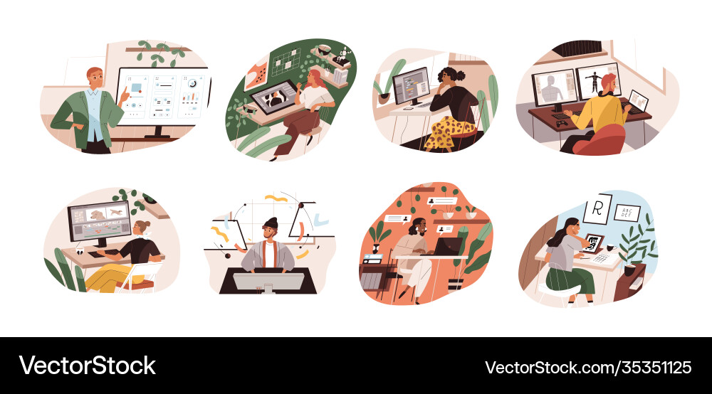 Set creative workers working at computers Vector Image