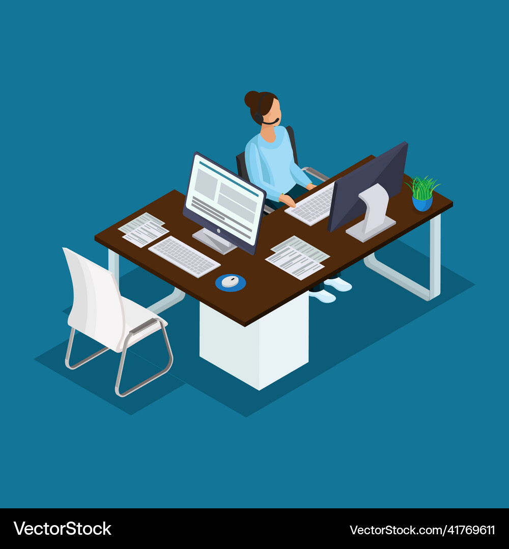 Employee working with computer and laptop Vector Image