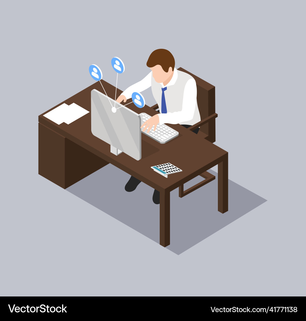 Office worker or businessman working on computer Vector Image