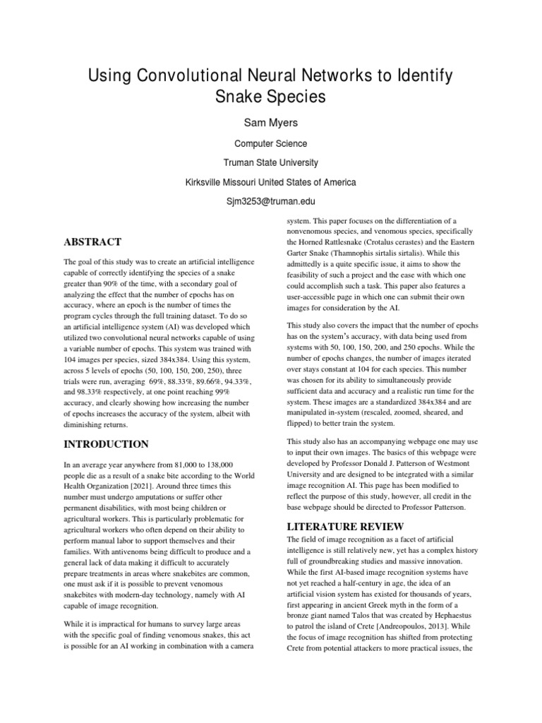 Using Convolutional Neural Networks To Identify Snake Species | PDF ...