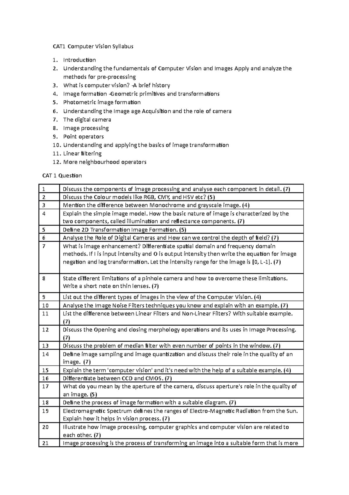 CAT1 Computer Vision Syllabus - CAT1 Computer Vision Syllabus ...
