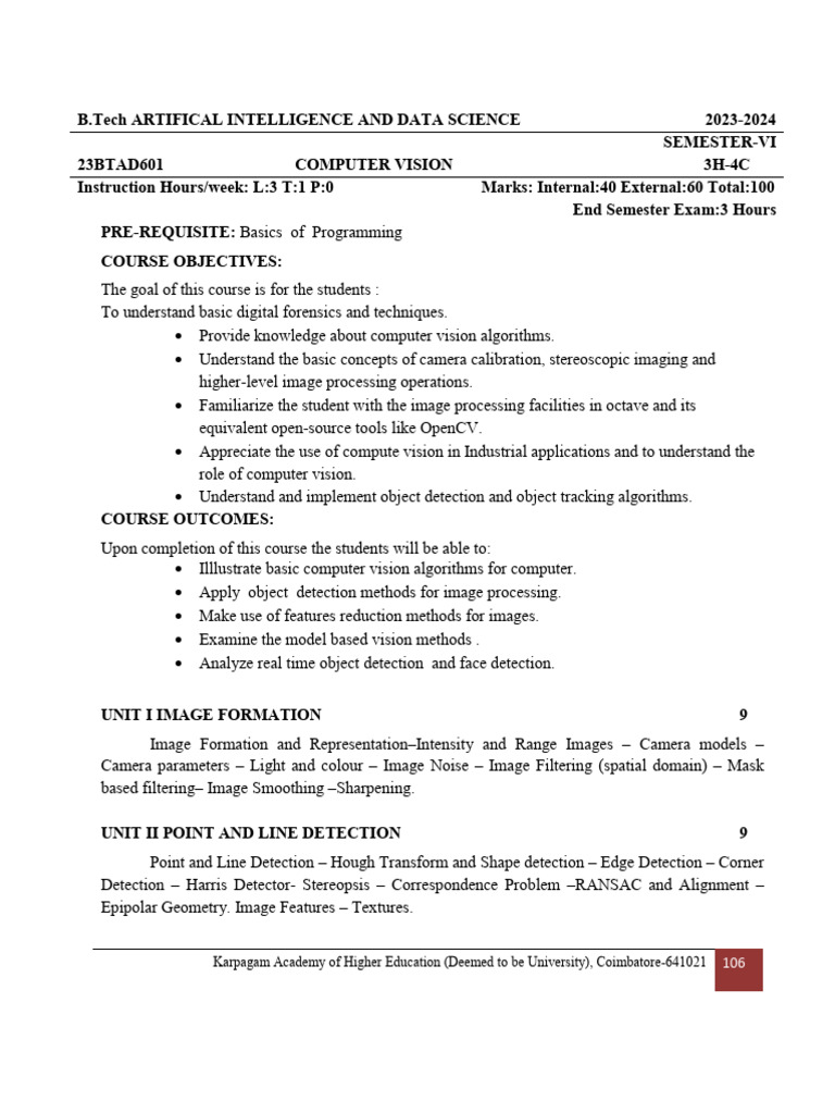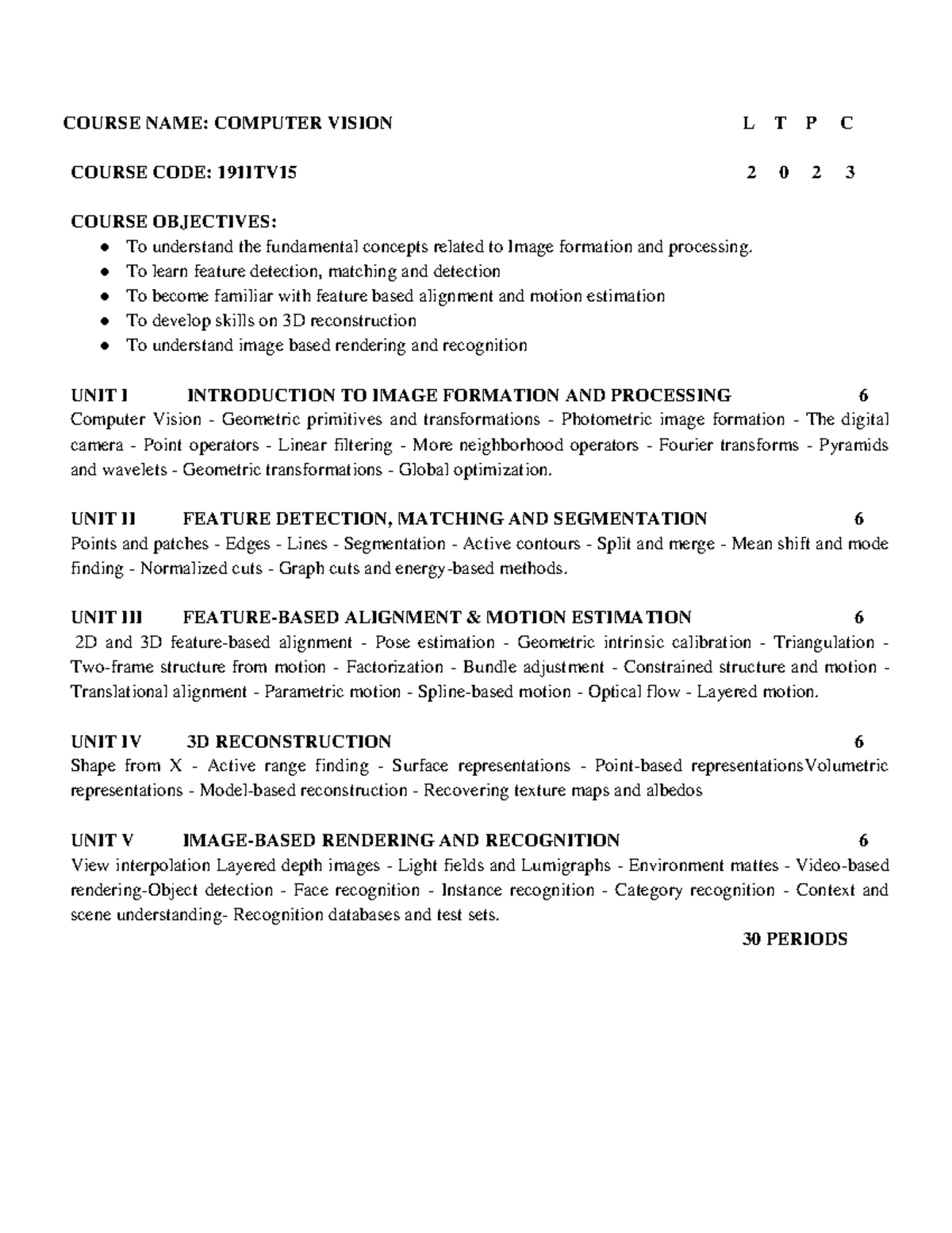 Computer Vision Syllabus (191ITV15) - Course Overview and Units - Studocu