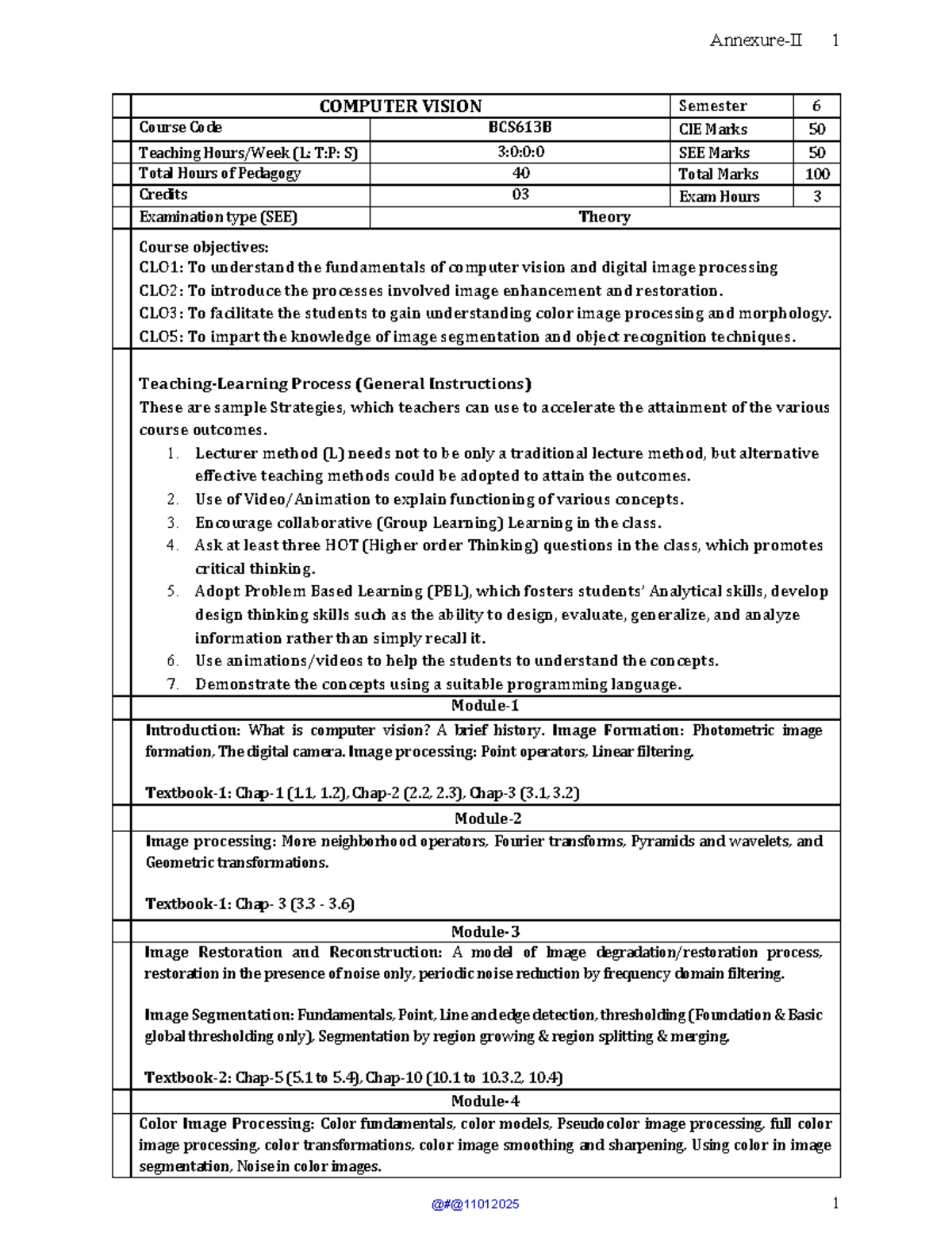 Computer Vision Syllabus (BCS613B) - Semester 6 Outline - Studocu