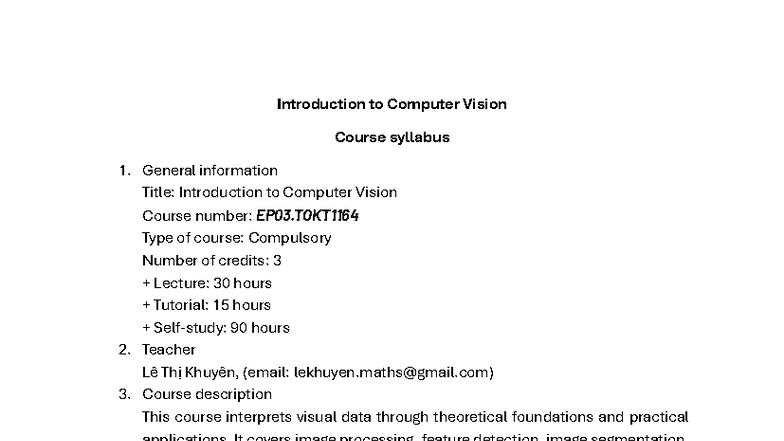 Syllabus for Introduction to Computer Vision (EP03.TOKT1164) - Studocu