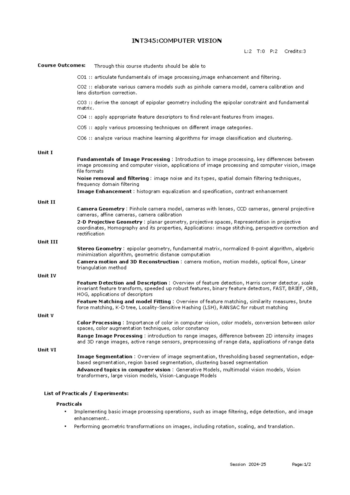 INT345: Computer Vision Syllabus - Lecture 2 Overview - Studocu