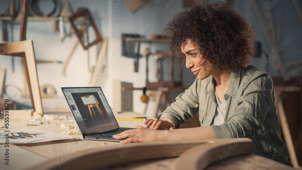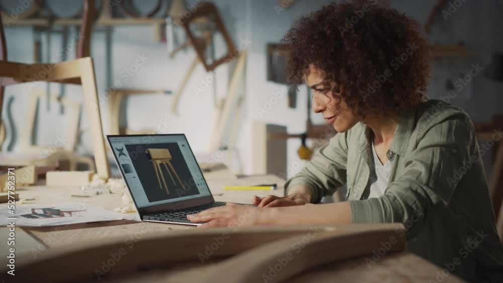 Woodcraft Artist Working on Laptop Computer, Creating a Digital 3D ...