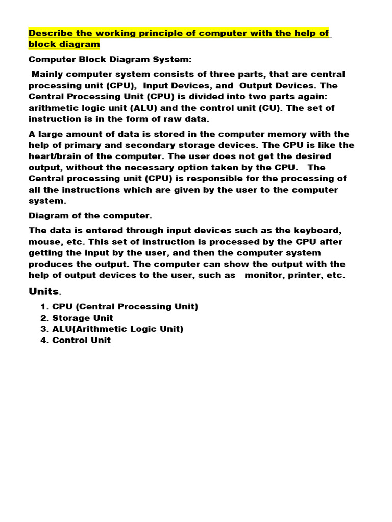 1.1.7 Block diagram and Working Principle of Computer | PPT